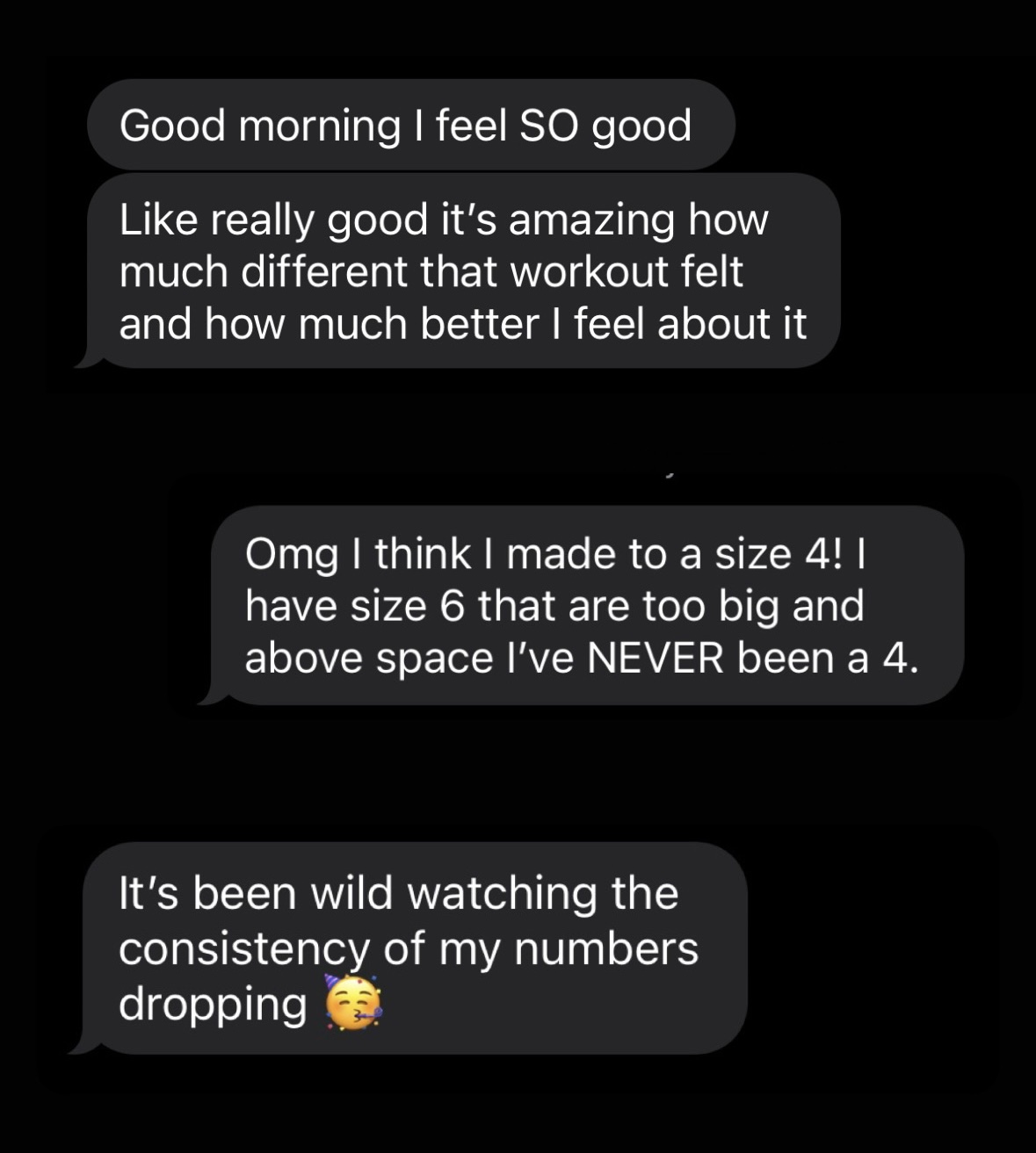 I have learned my way around a gym with ZERO previous knowledge. Working out 3 days a week and being comfortable in doing so. Hitting step goals like it’s nobody’s business when I used to HATE having to push myself for movement.